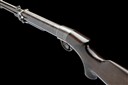 for 1907, with 19 1/4in. barrel, dove-tailed fore-sight, elevating notch rear-sight, tap-action breech, the top of air-chamber marked in unusually large font 'BSA AIR RIFLE' over 'MADE BY THE BIRMINGHAM SMALL ARMS COMPANY LIMITED', single pin trigger unit, chequered walnut saw-handled butt-stock, the left side with the BSA piled arms trademark, the right with an impressed 'USC' monogram, no provision for fore-end and 'spade' catch under-lever, shallow pitting to iron surfaces
