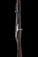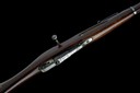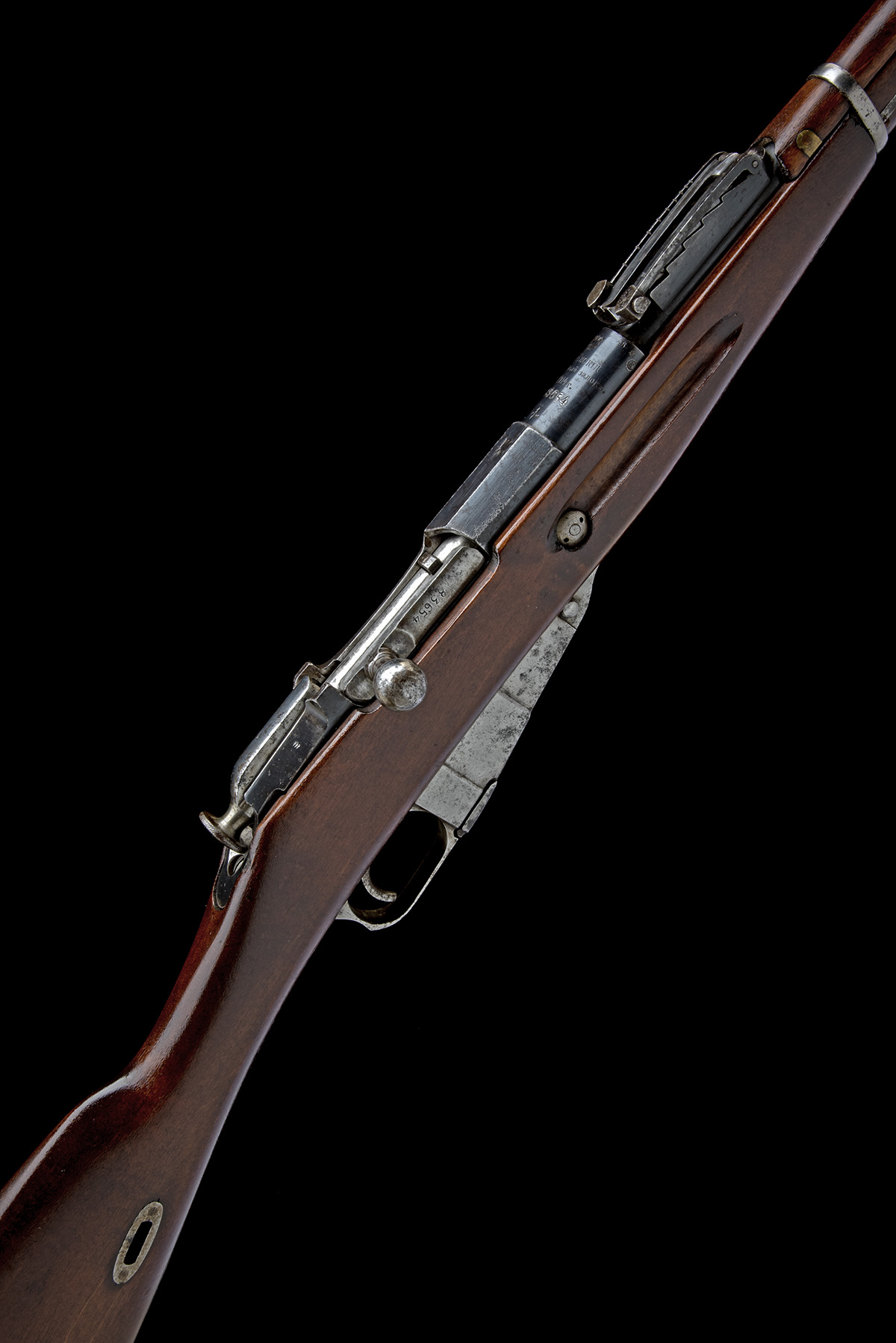 dated 1914, 29 3/4in. nitro reproved barrel (in 2025, with certificate), KaB marked Konovalov adapted rear sight graduated from 13-32 hundred arshini, block and blade fore-sight, barrel ring engraved 'IZHEVSK ARMS FACTORY. 1914r. 85654.' (in cyrillic), hexagonal receiver, straight bolt, hinged magazine, three-quarter length stock with clearing rod, 13 3/8in. pull including steel buttplate, weight 8lb. 2oz.