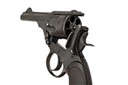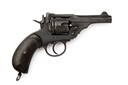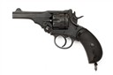 circa 1901, with 4in. barrel, integral fore-sight blade, break-open frame with automatic ejecting and fluted six-shot quick-release cylinder, stirrup locking latch, double action trigger and hammer, chequered hard rubber birdshead grips (right chipped at toe) and lanyard ring at heel, older military re-finish, Union markings, possibly Transvaal Police, with certificate of proof dated 2025