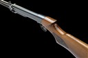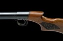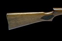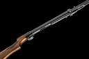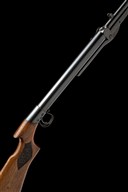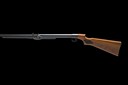 one of the last produced in 1939, with reblued 19 1/4in. barrel, dove-tailed fore-sight, elevating notch rear-sight, tap-action breech, reblued air chamber (no etched details remaining), three-hole trigger unit, walnut saw-handled butt-stock and push-button release under-lever