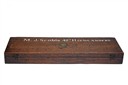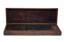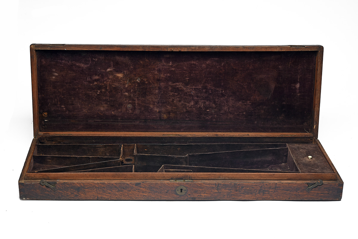 lined and compartmented in brown baize (stained), measuring externally 32in. x 10in. x 3 1/4in., hook and lock closure, no key, blank brass escutcheon, lid reading 'M. J. SCOBIE 42ND HIGHLANDERS'