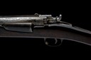 dated 1892, 33in. black powder only barrel with outer shroud, block and blade fore-sight, adjustable tangent rear sight, manual side safety, turned-down bolt handle, side-opening magazine, receiver engraved 'GEVAERFABRIKEN. KJOBENHAVN. 1892. M89.', brushed finish, full-length stock, 13 1/8in. pull including steel buttplate, sling swivels, weight 9lb. 9oz.