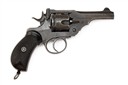 circa 1893, with 4in. barrel, moulded fore-sight blade, break-open frame with automatic ejecting and fluted six-shot coin-release cylinder, stirrup locking latch, double action trigger and hammer, chequered hard rubber birdshead grips (left chipped at toe) and lanyard ring at heel, retaining a strong amount of original blued duo-tone finish, with certificate of proof dated 2011