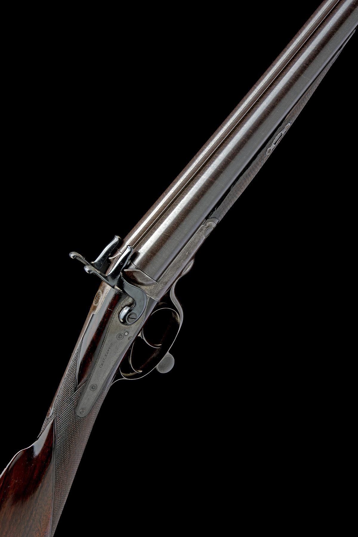 A CASED 12-BORE PINFIRE DOUBLE-BARRELLED SPORTING GUN SIGNED CHA'S. NEWTON, LONDON, no visible serial number,
