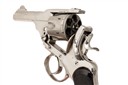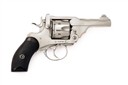 circa 1914, with nickel plated 3in. barrel, ramp fore-sight with nickel blade, break-open frame with automatic ejecting, fluted six-shot quick release cylinder, sighting notch to the stirrup latch, double action mechanism and chequered hard rubber grips, retaining virtually all its original plated finish