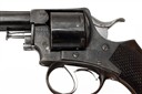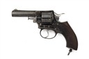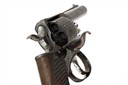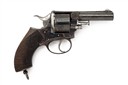 circa 1879, factory converted from .442, with blued round 3 5/8in. barrel, moulded full-length fore-sight ramp with nickel blade, sighting groove to the solid top-strap, blued frame marked 'WEBLEY'S RIC No.2 .442', the calibre overstamped '.450' by the factory, blued plain six-shot cylinder with rear ratchet locking, brushed bright hammer and trigger, frame-mounted ejector, chequered walnut grip with angled heel and central lanyard ring, much period finish remaining