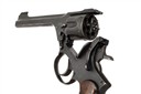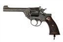 dated for 1940, with 5in. barrel, ramp and blade fore-sight, fluted cylinder, break-open frame, double action mechanism with spurred hammer and fitted with chequered walnut grips, the whole period military finished