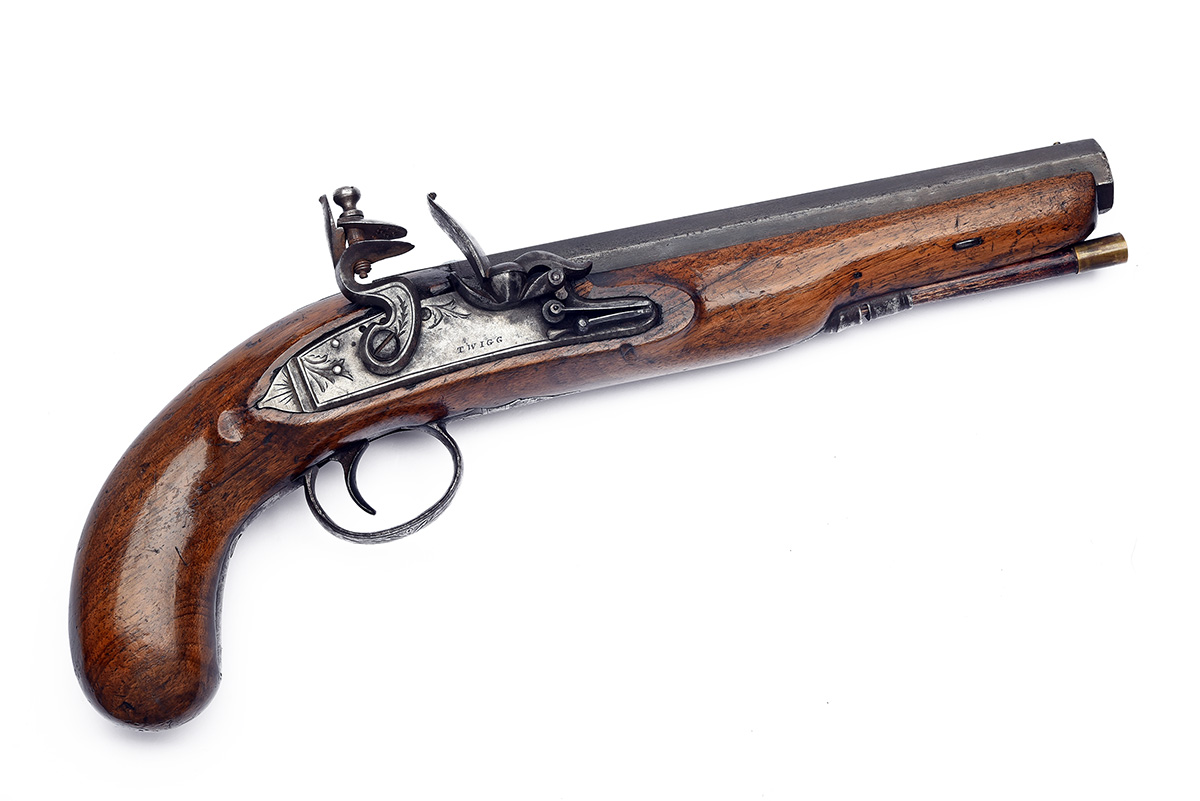 A 20-BORE FLINTLOCK OFFICER'S PISTOL SIGNED TWIGG, LONDON, no visible serial number,
