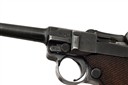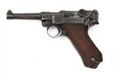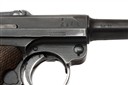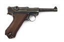 dated for 1917, with 4in. barrel, dated receiver bridge of the type also cut for and artillery barrel rear-sight, maker's signature to toggle, machined frame, chequered walnut grip and detachable magazine, all matching numbers except magazine, finish faded and worn