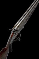 for 1893, with damascus 32in. barrels, the machine engraved top-rib signed in a rectangular panel 'W.R. PAPE NEWCASTLE-ON-TYNE. INVENTOR OF CHOKE BORING', bead fore-sight, colour hardened rounded swing-under-lever receiver with bored engraving and shallow moulded fences, border engraved colour hardened back-action locks signed centrally 'W.R. PAPE', figured chequered walnut semi pistol-grip butt-stock, ribbed horn heel-plate and chequered walnut splinter fore-end with pull-down catch release and horn tip insert