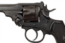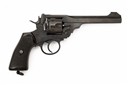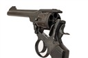 dated for 1918, with 6in. barrel, ramp and blade fore-sight, rear-sight notch to the barrel locking latch, break-open frame with holster guides, six-shot fluted cylinder (some pitting to external edge of one chamber), double action mechanism and chequered hard rubber grips, good commercial refinish