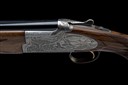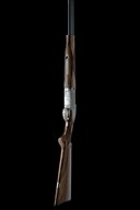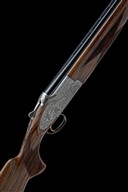 for 2003, 30in. nitro reproved barrels with 6mm ventilated matt top-rib, 2 3/4in. chambers, bored approx. 1/4 and 1/2 choke, hold-open toplever, manual safety with integral barrel selector, gold-washed trigger, action and decorative sideplates with acanthus scroll engraving and game scenes of woodcock, pheasant and hound, 14 7/8in. figured pistolgrip stock including buttplate, weight 7lb. 12oz., in its universal case