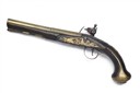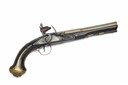 A 22-BORE FLINTLOCK BRASS-BARRELLED HOLSTER PISTOL SIGNED KETLAND & CO., no visible serial number,