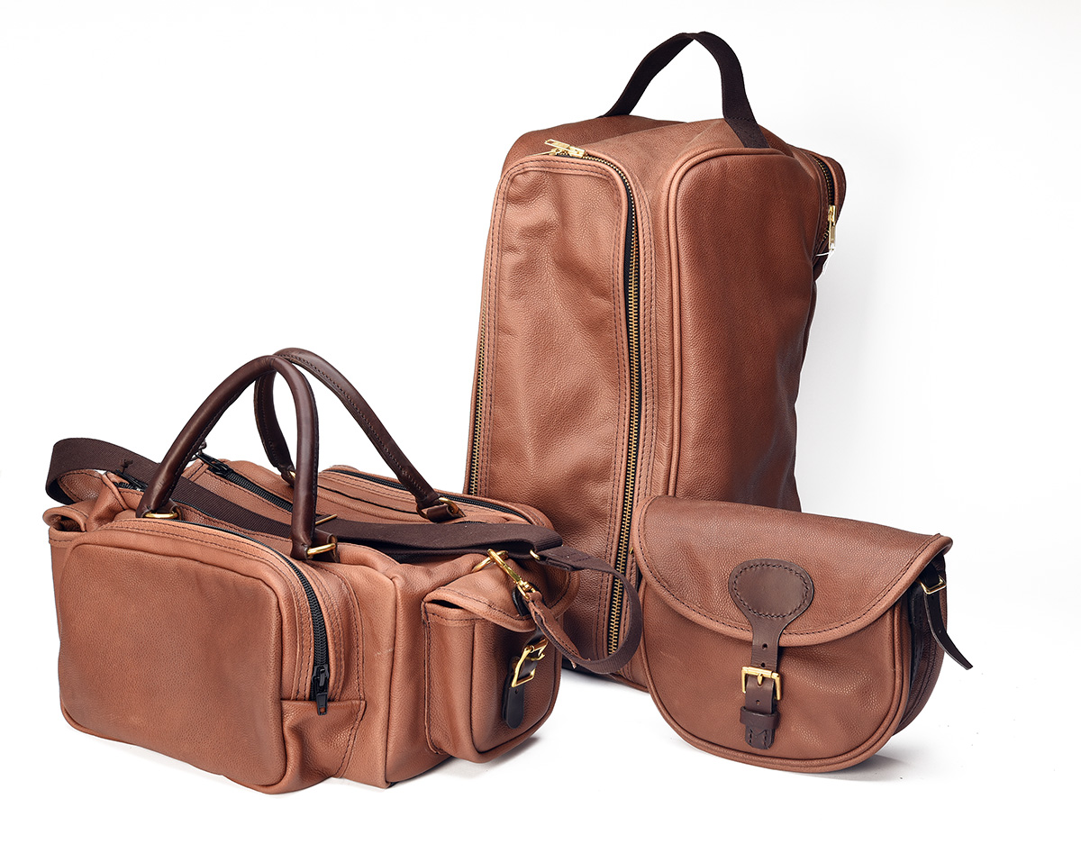 comprising a large leather bootbag, a multi-compartmented and a leather cartridge bag (3)
