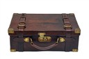 A BRASS-CORNERED LEATHER CARTRIDGE MAGAZINE,