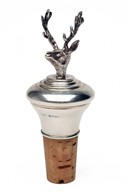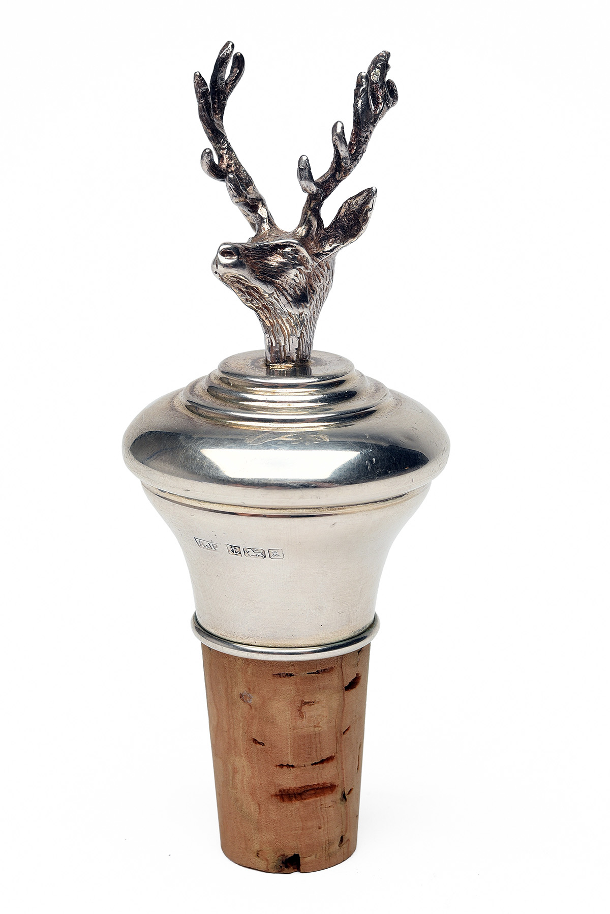 A STERLING SILVER STAG-TOPPED CORK BOTTLE STOPPER,