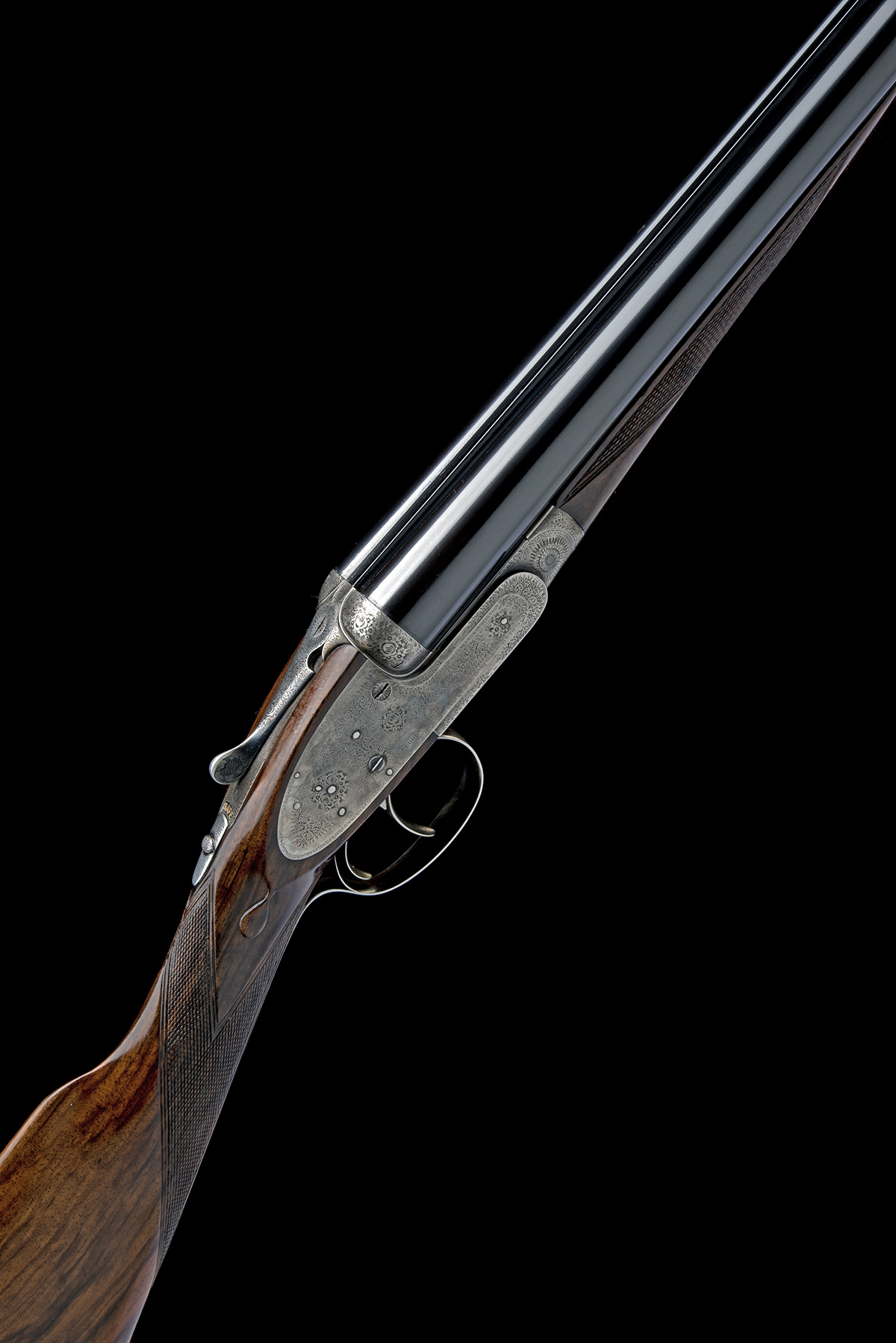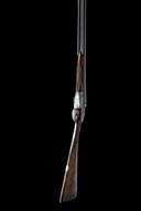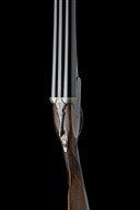 circa 1918, 30in. nitro chopperlump barrels (in 2012), rib inscription rubbed under reblue, 2 3/4in. chambers, bored approx. 1/4 and 3/4 choke, removable striker discs, automatic safety with gold-inlaid 'SAFE' detail, cocking-indicators, best fine acanthus scroll engraving with floral bouquets, retaining very slight traces of colour-hardening, 15 3/8in. well figured stock including 1in. leather covered recoil pad, weight 6lb. 14oz., in its brass-cornered oak and leather case