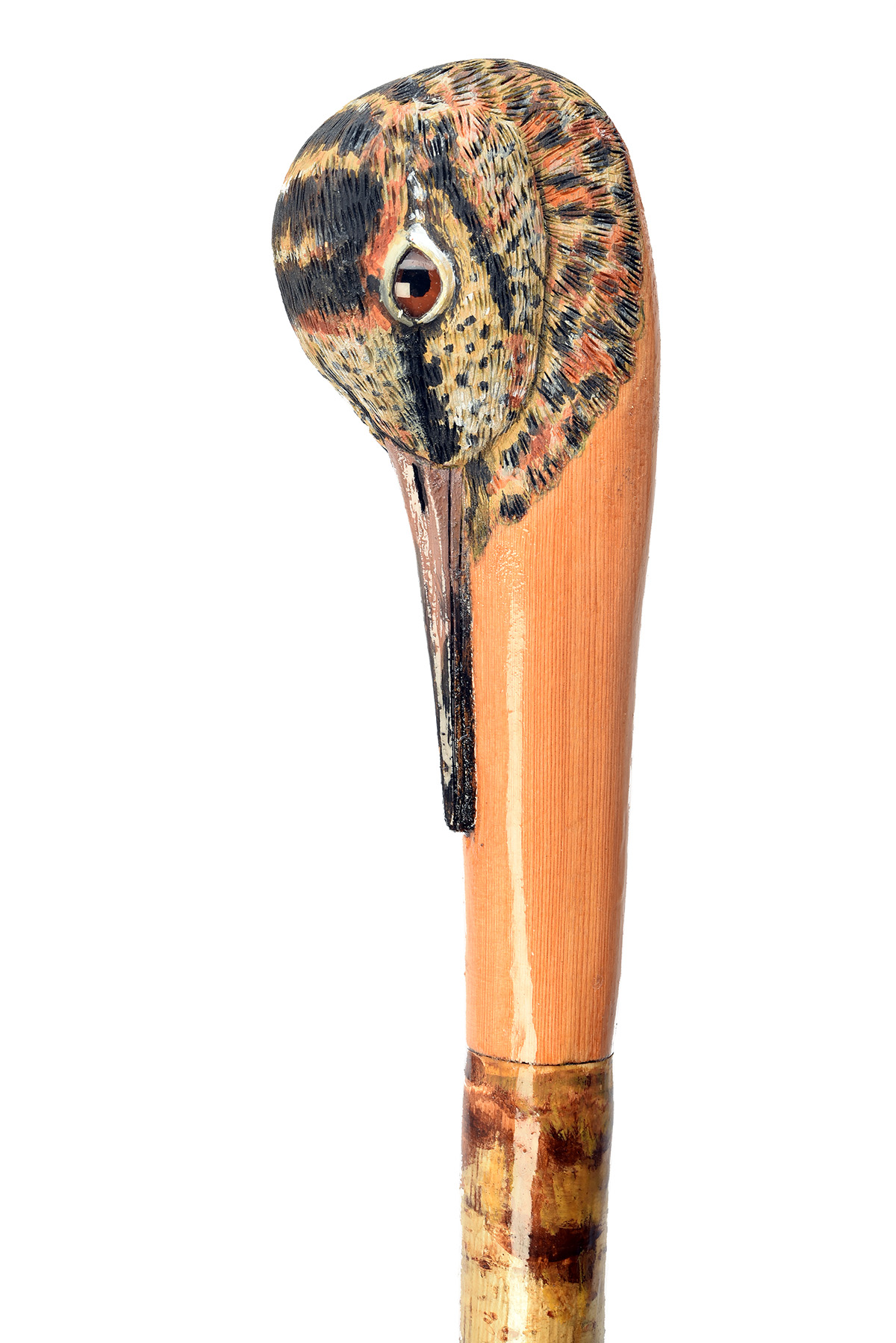 with ashwood type shaft, the top carved in the form of a woodcock head, measuring approx. 50in. in length