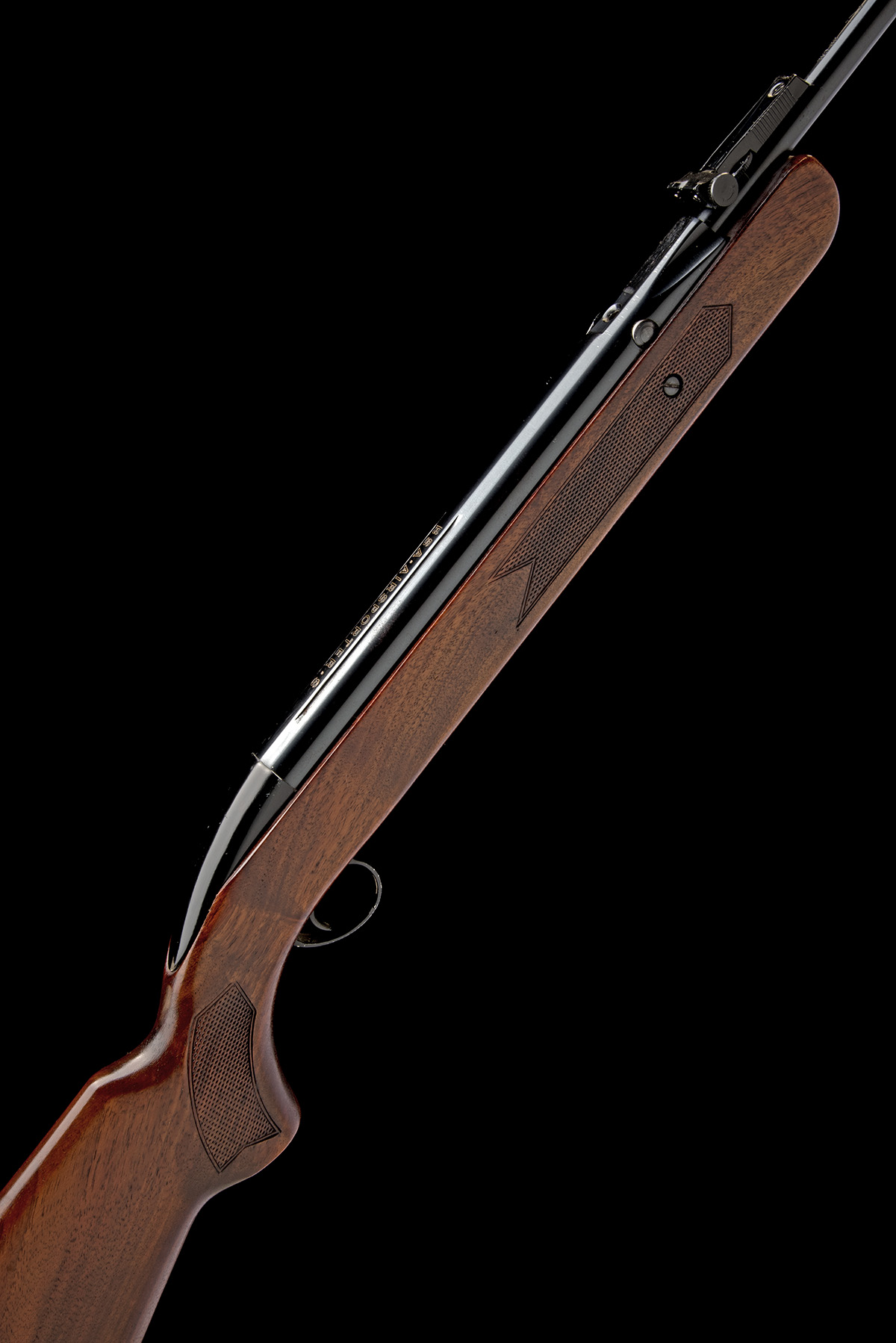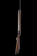 circa 1980, with blued 19 1/2in. barrel, ramp fore-sight and adjustable rear-sight, tap-action breech with alloy handle, blued air-chamber with machined rail for telescopic sight, blacked alloy trigger unit, chequered walnut half-stock open at the fore-end tip and with concealed under-lever, generally collector's external condition