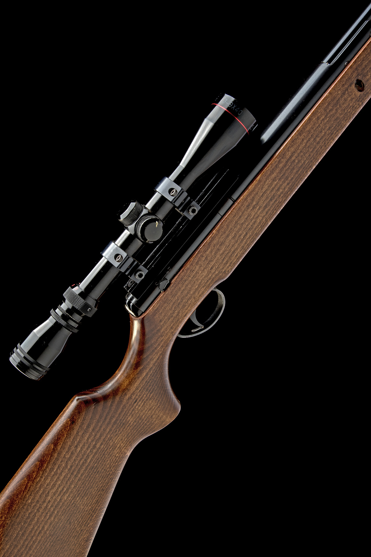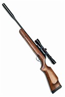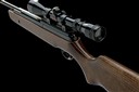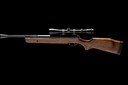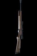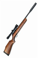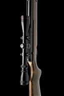 circa 2000, with blued 22 1/2in. barrel including dedicated sound moderator, plain blued air-chamber with applied alloy telescopic sight rail, no provision for open sights, beech half-stock with brass-mounted filling aperture below fore-end, generally collector's external condition (tested) and fitted with a Simmons 3-9x50 telescopic sight