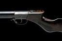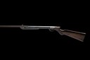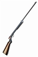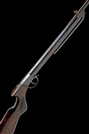 circa 1925, with blued round 19in. barrel, dove-tailed fore-sight, elevating notch rear-sight, plain air-chamber signed 'MIDLAND GUN CO. BIRMINGHAM. MADE IN ENGLAND', squared trigger unit, chequered beech saw-handled butt-stock (well repaired split at head), iron furniture and no provision for fore-end, strong amount of apparently period finish