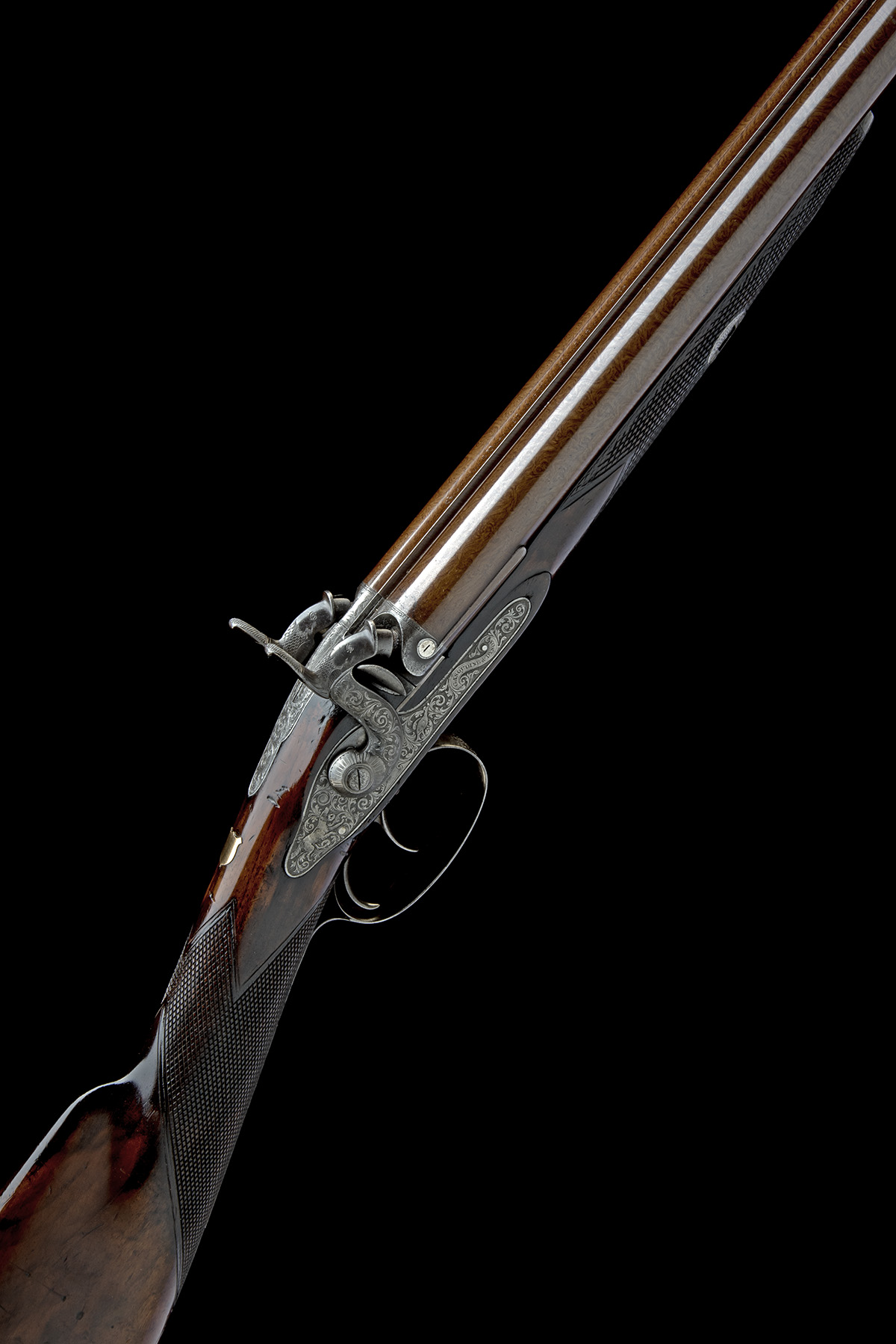 A CASED 15-BORE PERCUSSION DOUBLE-BARRELLED SPORTING GUN, serial no. 1438,