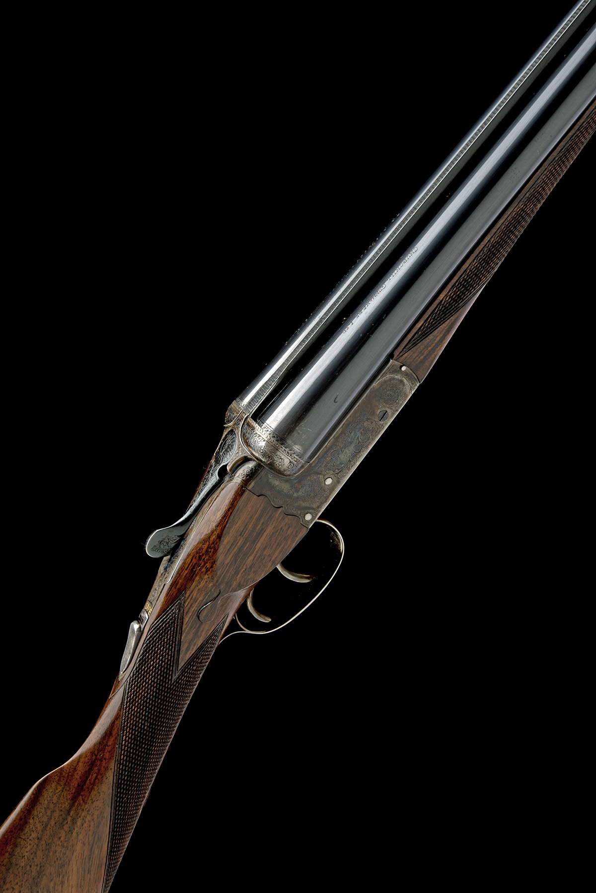 for 1974, 27in. nitro barrels with matt Churchill-rib, the tubes engraved 'CHURCHILL GUNMAKERS LTD. 7, BURY STREET. ST. JAMES'S. LONDON. ENGLAND', 2 3/4in. chambers, bored approx. 1/4 and 1/2 choke, scroll-back action with slender fences, automatic safety with gold-inlaid 'SAFE' detail, border and acanthus scroll engraving with floral bouquets, the sides engraved 'CHURCHILL' in scrolling banners, the underside with 'THE REGAL', retaining much original colour-hardening and finish, 14 1/8in. stock, weight 6lb. 5oz., in a Brady case