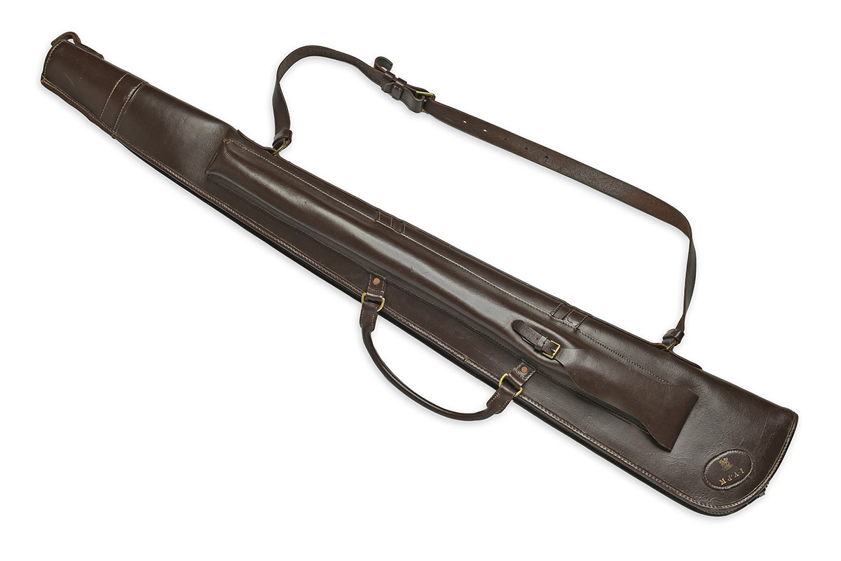 A FLEECE-LINED LEATHER SINGLE GUNSLIP WITH PROVISION FOR EXTRA BARRELS,