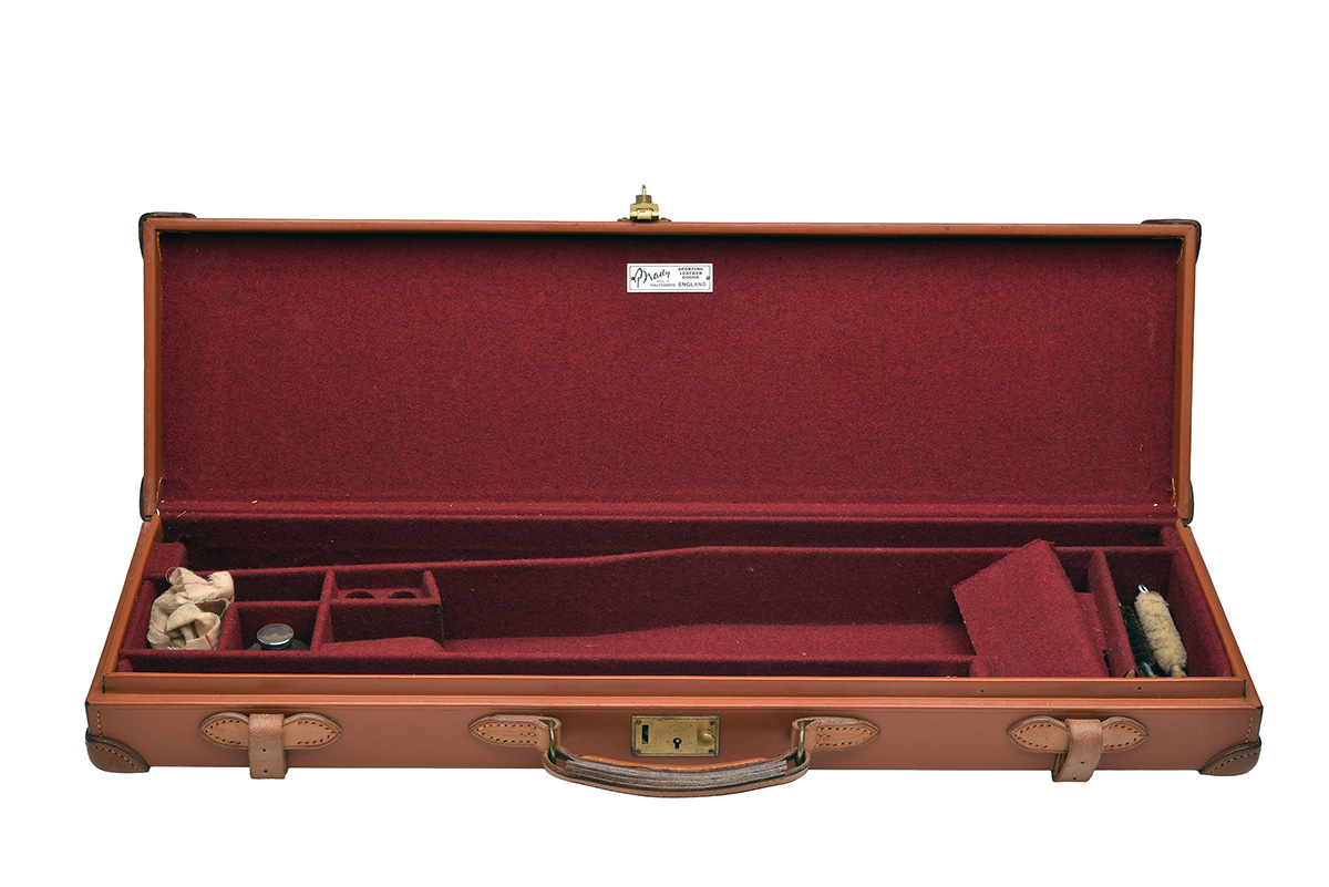 BRADY A LIGHTWEIGHT TAN LEATHER SINGLE GUNCASE,