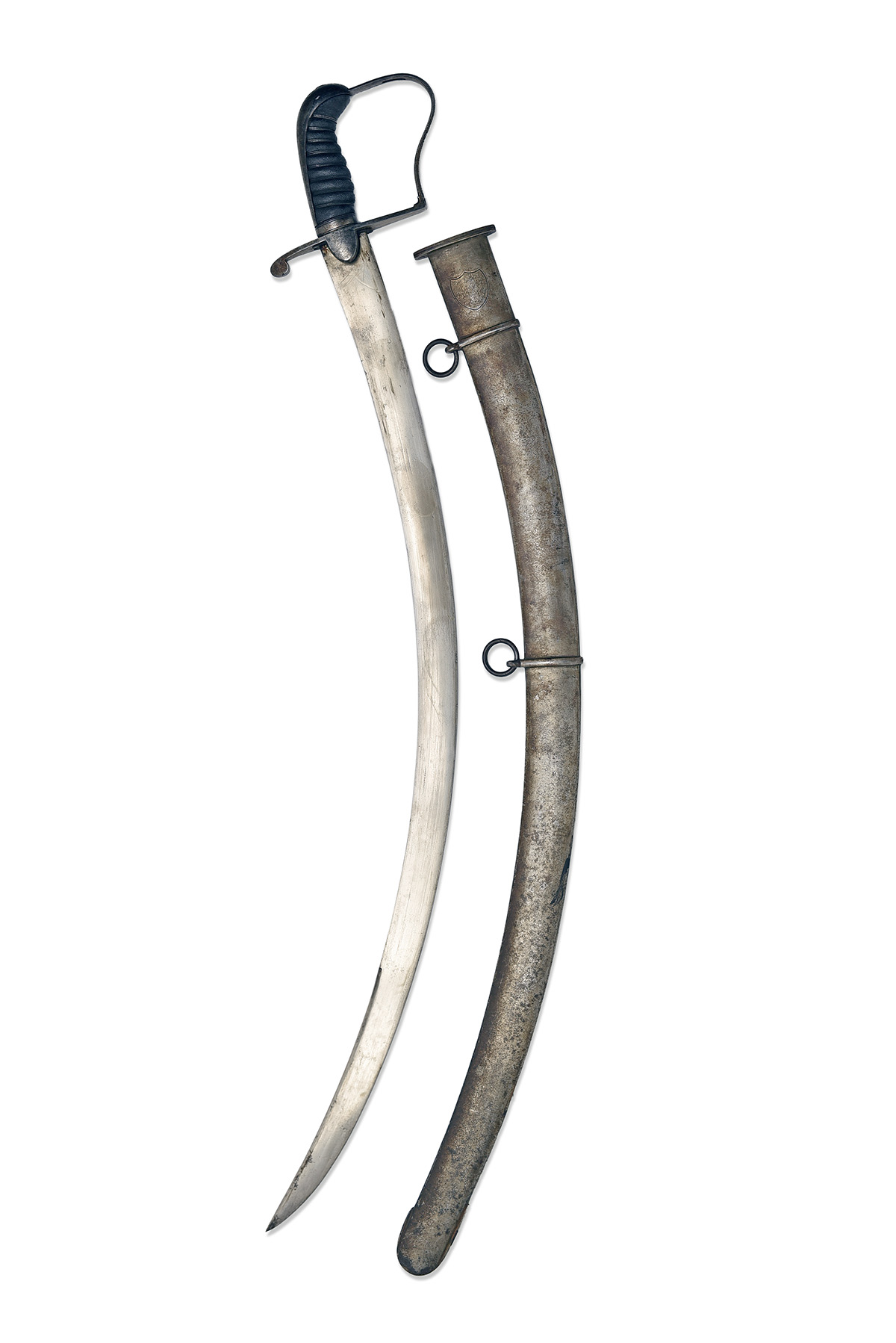 early 19th Century, with 29in. unmarked and unfullered curved single-edged blade, double-edged for the last 8in., 1796 cavalry sword hilt with wire-bound fish-skin grip, steel scabbard with engraved shield below the throat containing retailer's details 'Hawkes / Moseley & Co / Piccadilly / London' with two suspension loops