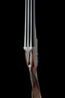 for 1920, 30in. nitro barrels (loose), the rib engraved 'WILLIAM POWELL & SON. 35. CARRS LANE. BIRMINGHAM,' (faint) and with acanthus scroll detailing at the breech end, 2 1/2in. chambers, bored approx. 1/4 and 1/2 choke, treble-grip action, automatic safety with gold-inlaid 'SAFE' detail, best border and acanthus scroll engraving with floral bouquets, retaining traces of original colour-hardening and renewed finish, 14 3/4in. figured replacement stock including 7/8in. wooden extension, weight 6lb. 1oz.