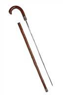 circa 1895, with square section 28 1/4in. blade numbered near the hilt '13588', brass ferrule at the joint, natural cane shaft and curved handle, the handle marked 'C&E' along with the serial number and turned brass drag to tip