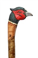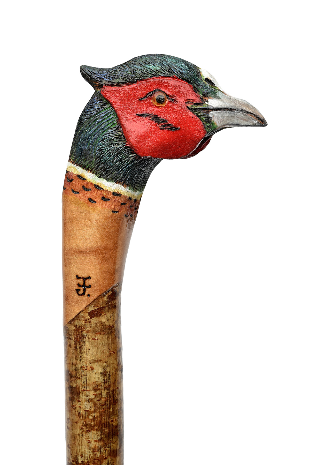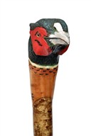 measuring approx. 51 1/2in. in length, with hardwood shaft, the head carved and painted in the form of a cock pheasant