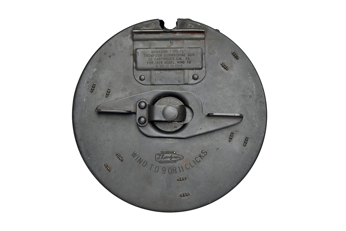 AN AUTO ORDNANCE CORP TYPE 'L' 50-ROUND DRUM MAGAZINE FOR A THOMPSON SUB-MACHINEGUN,