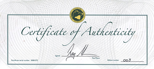 of 250 produced to celebrate 25 years of Ray Mears's Woodlore and circa 2006, manufactured by the celebrated Swedish knifemaker Julius Pettersson, with 4 1/2in. drop-point blade stamped with Ray Mears's trademark on the left and 'J.P.' within a rectangle above the issue number on the right, the sides of carbon-steel left deliberately unfinished, stained smooth hardwood grips held by two flush fitting brass rivets and with a brass lined lanyard hole to pommel, together with its leather friction scabbard; COMPLETE WITH its special anniversary carton and individually numbered certificate signed by Ray Mears, the whole in unused condition