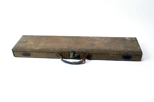 A CANVAS AND LEATHER SINGLE GUNCASE, fitted for 30in. barrels, the interior lined with green baize, brass lock (key missing