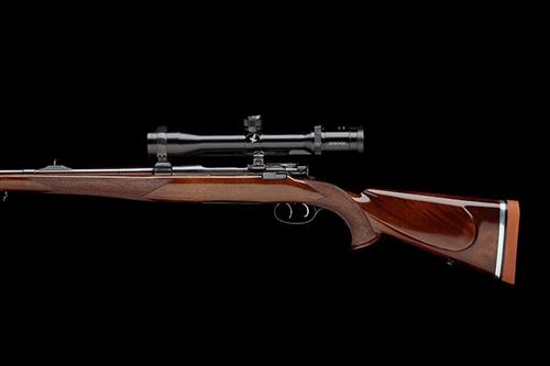21 1/4in. nitro barrel with block-mounted open sights and ramp-mounted bead fore-sight, the receiver mounted with a Swarovski 1,5-6x42 Habicht telescopic sight in quickly-detachable mounts, matt top receiver ring engraved 'MADE IN AUSTRIA ORIGINAL MANNLICHER SCHOENAUER MOD GK KAL 7X64', swept back butterknife bolt handle, side safety, detachable rotary box magazine, set triggers, figured full-stock with cheekpiece and semi-birdshead pistolgrip, sling swivels, 14 1/8in. pull including 1 1/2in. rubber recoil pad with adjusting plates, weight 8lb. 5oz. (unscoped) and 9lb. 12oz. (with scope) in its full length brass-cornered leather case