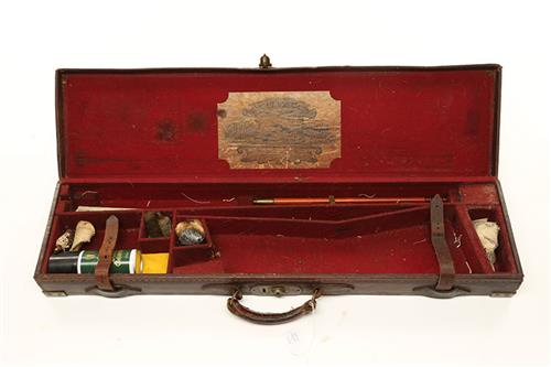 A W.R. PAPE BRASS-CORNERED SINGLE LEATHER SINGLE GUNCASE,