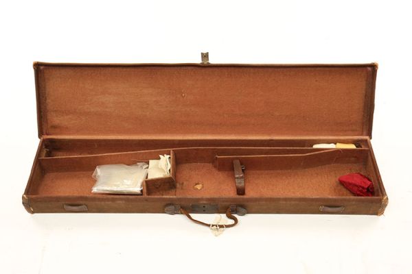 A LIGHTWEIGHT CANVAS AND LEATHER SINGLE GUNCASE,