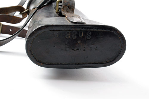 A VINTAGE LEATHER INSTRUMENT CASE SUITABLE TO HOLD SHOTGUN BARRELS, measuring approx. 26in. in length, leather shoulder strap