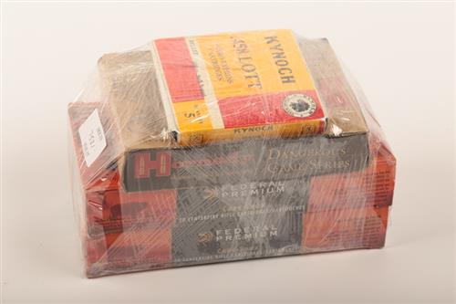 FIFTY FIVE ROUNDS OF .458 LOTT BIG GAME RIFLE BY FEDERAL (37 ROUNDS) ,HORNADY (14 ROUNDS) & 4 BY KYNAMCO the Federal & Hornady listing bullets of 500 grains (Hornady solids & Federal soft nose "Bear Claw") with the Kynamco having 480 grain soft nose bullets.