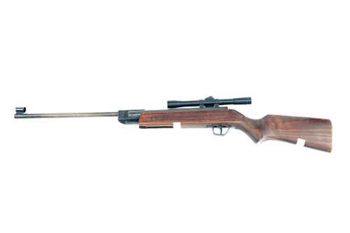 A .177 BREAK-BARREL AIR-RIFLE SIGNED 'RELUM', MODEL 'LG422', serial no. 38747, with 15 3/4in. barrel retaining a tunnel fore-sight, plain air-chamber and plain beech half-stock, FITTED WITH a 'BISLEY' 4x20 telescopic sight, finish worn throughout