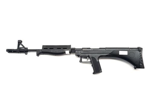A .177 SIDE-LEVER BULL-PUP AIR-RIFLE SIGNED AIRFORCE ONE, MODEL 'AFO-15', serial no. 201401010, recent, with 20in. blued barrel including abs plastic muzzle-break and fore-sight, blued air-chamber with sliding breech, black plastic abs stock, appearing little used