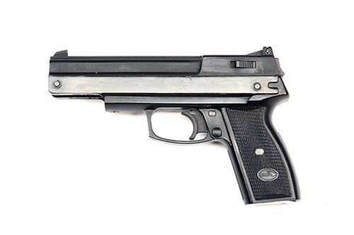 A .177 SINGLE-STROKE PNEUMATIC AIR-PISTOL, serial no. 574062, possibly a PR45 model, with concealed 6in. barrel, kevlar shroud, plastic and steel frame, chequered grip