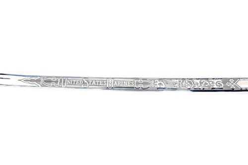 possibly a limited edition and manufactured by the 'JAPANESE SWORD' company, with unedged 29 1/2in. slightly curved blade etched with 'UNITED STATES MARINES' and scrolls, gilded mameluke type hilt with ivorine grips, complete with its plated scabbard with gilded mounts
