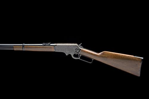 first quarter of the 20th century, with round 20in. barrel, the top-flat signed with the maker's address and patent dates to 1893, the left hand side marked 'SPECIAL SMOKELESS STEEL', block and blade fore-sight, folding ladder rear-sight , slab-sided receiver, the top marked 'MARLIN SAFETY', provision for peep-sight to the wrist, walnut butt-stock with iron heel-plate (filled inlet from a removed swivel-mount), iron finger-lever, plain walnut fore-end and full-length magazine tube, much blued finish and traces of colour to receiver
