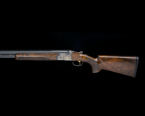 29 1/2in. Boehler Antinit-steel nitro barrels with 9mm ventilated matt top-rib and ventilated mid-rib, 2 3/4in. chambers, bored approx. 3/4 choke in both, hold-open toplever, manual safety, gold-washed trigger, double rolled-edge triggerguard, satin gunmetal finish action with border engraving and gold-inlaid with central depictions of a cup and laurel wreath, the underside gold-inlaid with the makers name and model designation, the triggerguard gold-inlaid 'TRAP', 14 3/4in. figured pistolgrip stock including later (oversized) Kick-eez rubber recoil pad, weight 8lb. 3oz., in a Beretta universal motorcase, with some spare internal parts and original paperwork