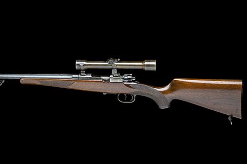 21 7/8in. octagonal nitro barrel with raised tapered matt top-rib, engraved 'MAUSER-WERKE A.G. OBERNDORF AM NECKAR', open sights removed and dovetailed inserts, the muzzle threaded for a sound moderator and front sight ramp modified, (thread cap seized), receiver (with thumb cutout) mounted with a contemporary Carl Zeiss Zielvier telescopic sight, serial no. 34165, in quickly-detachable mounts, hinged floorplate with lever release, double set triggers, high-combed pistolgrip stock with engraved steel pistolgrip-cap, sling swivels, 15in. pull, weight 8lb. 4oz.