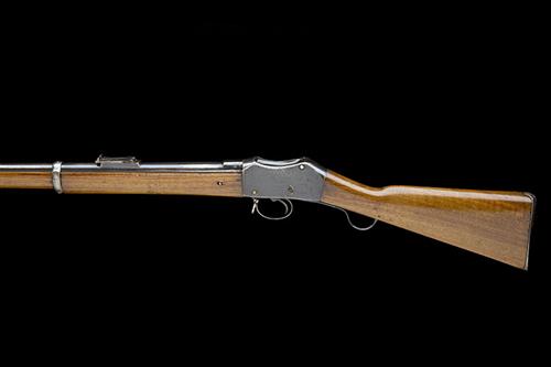 * A .577-450 (M/H) SINGLE-SHOT SERVICE-RIFLE SIGNED ENFIELD, MODEL 'MARTINI-HENRY MKII', no visible serial number, dated for 1874, with 33in. blued barrel (underside of chamber drilled through), block and blade fore-sight, elevating ladder rear-sight, slab sided receiver with dropping load ramp, the side of receiver marked 'ENFIELD' over the date and 'II' with crown and 'VR' device above, walnut butt-stock with iron heel-plate, short underlever, three-quarter length fore-end and iron furniture, missing ramrod, fair amount of possible original finish