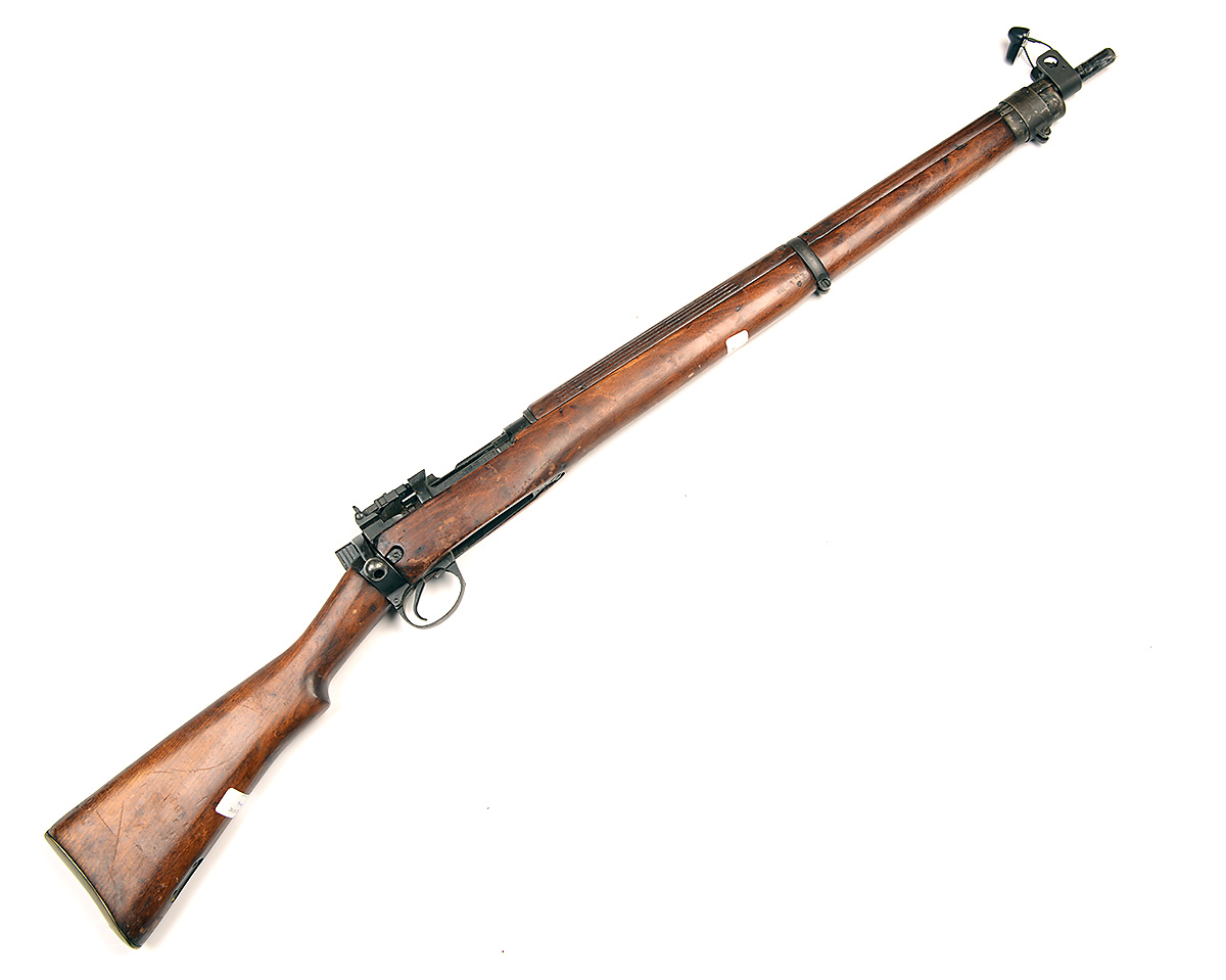 ** LEE ENFIELD .303 'No 4 MK I' BOLT-MAGAZINE SERVICE RIFLE, serial no. PF57134, 25 1/8in. nitro barrel, ramp-mounted fore-sight, folding rear battle sight, detachable box magazine is missing,